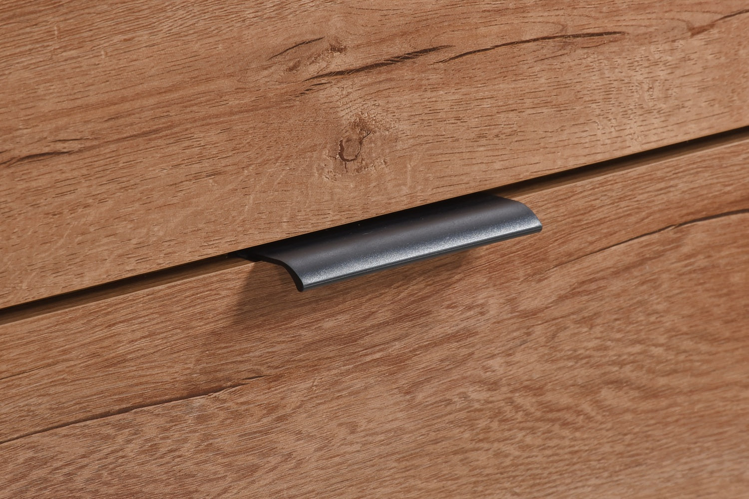 Each drawer glides smoothly and is adorned with sleek metal handles that add a contemporary touch to the classic wood grain. Built from high-quality materials for lasting durability, this chest combines form and function in one compact, stylish design.