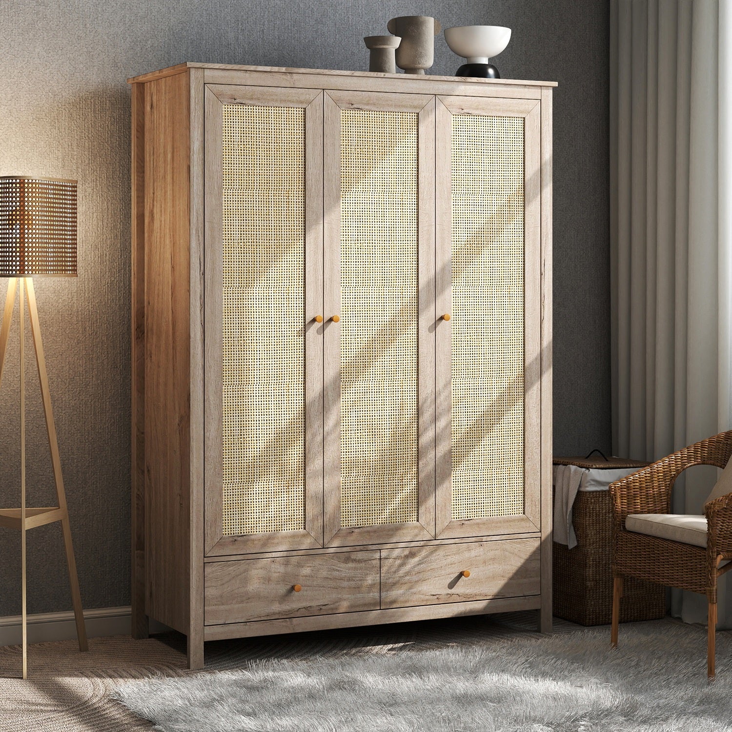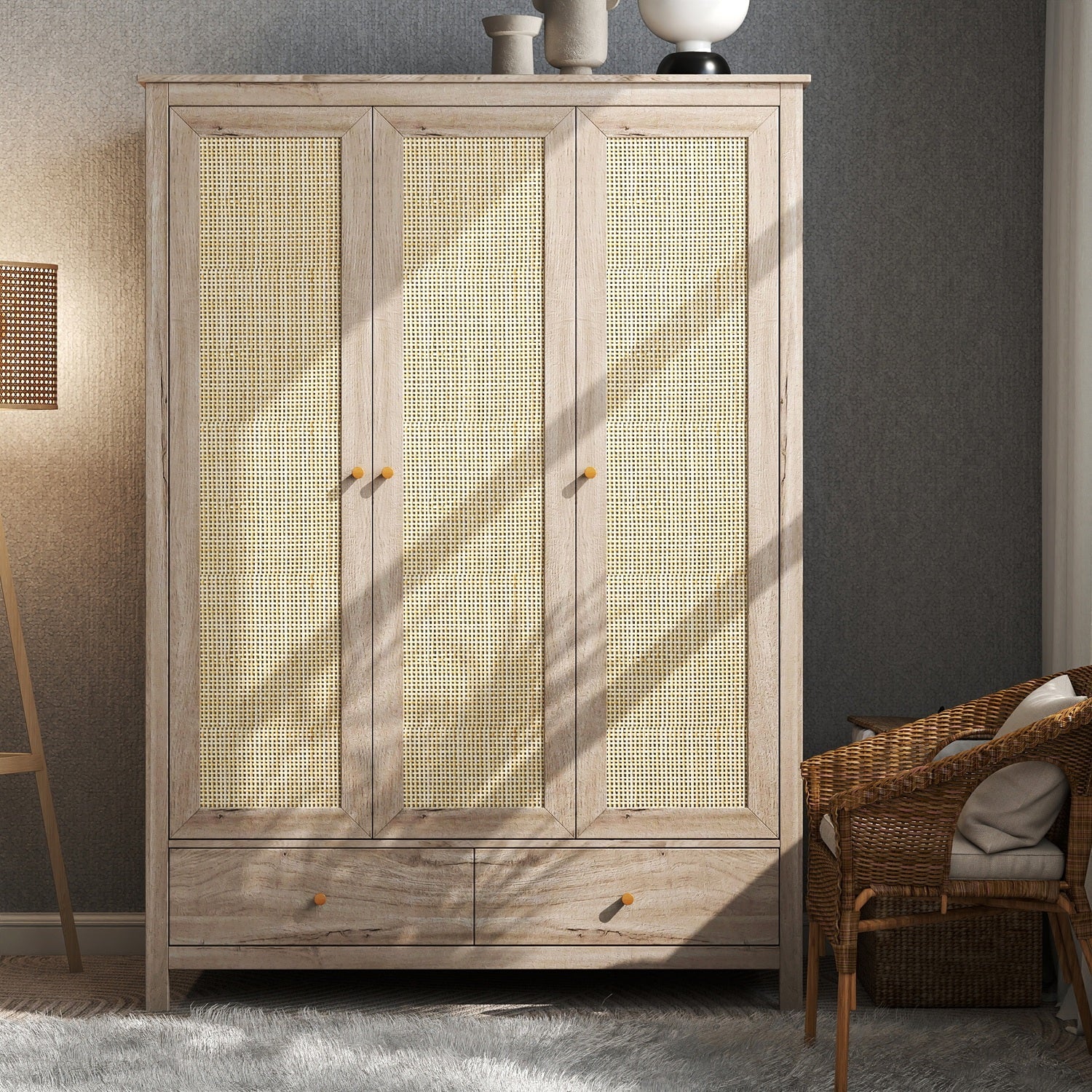 Willow Rattan 3 Door Triple Wardrobe with 2 Drawers